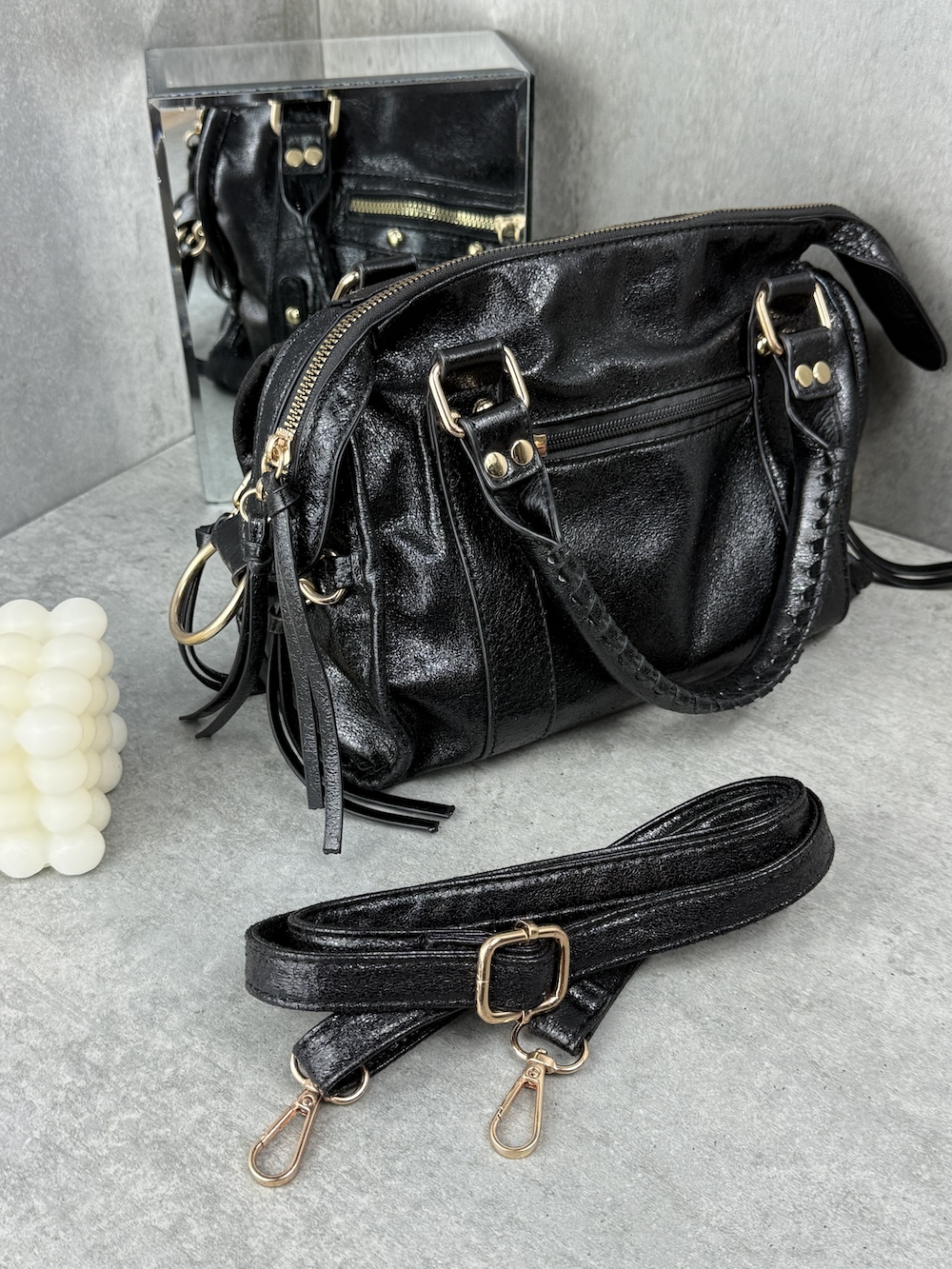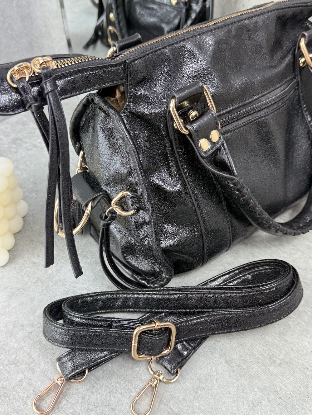 Schwarze Metallic Handtasche – Stilvoll, edel & vielseitig kombinierbar